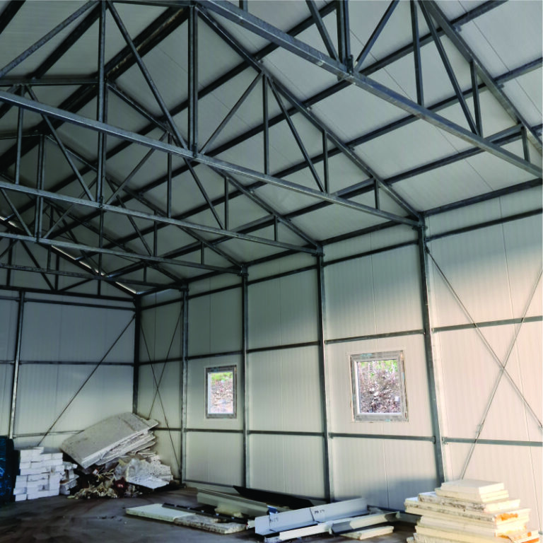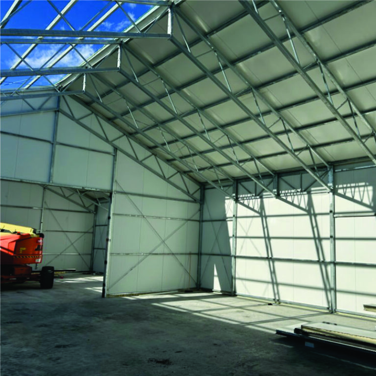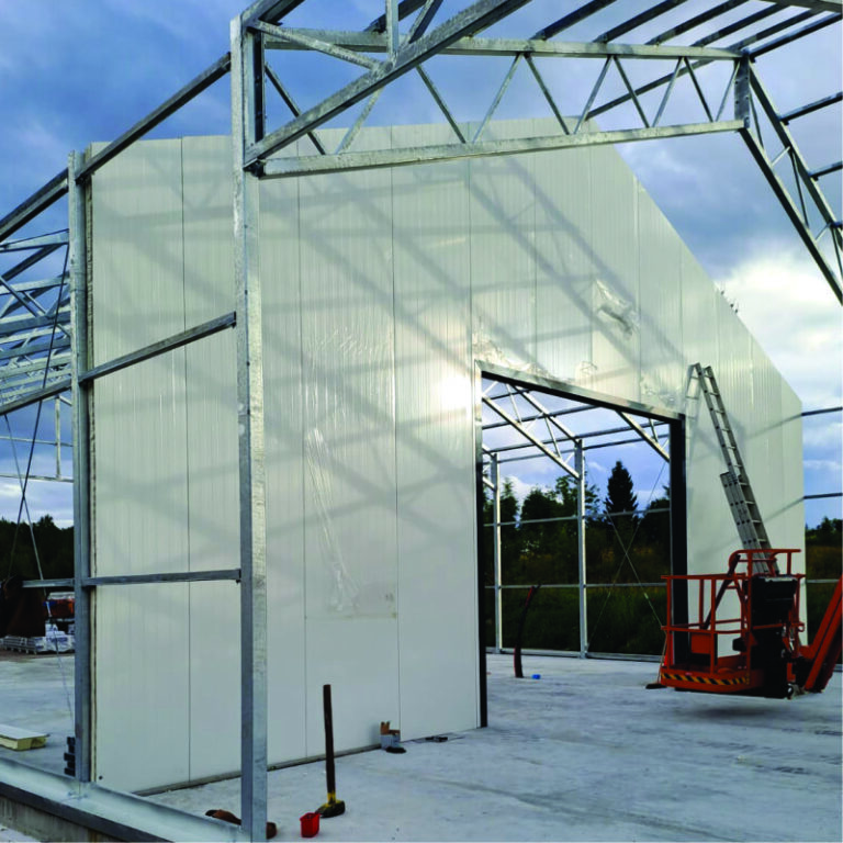 Hallen kan leveres med Sandwich isolering. Isoleringen er 10 cm og brukes i tak og vegger.