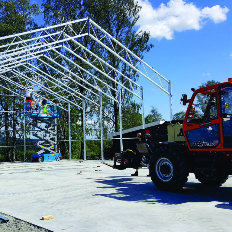 - Hallen kan leveres med kun reisverk i stål (for trevegger f.eks). Ta kontakt for pris.
