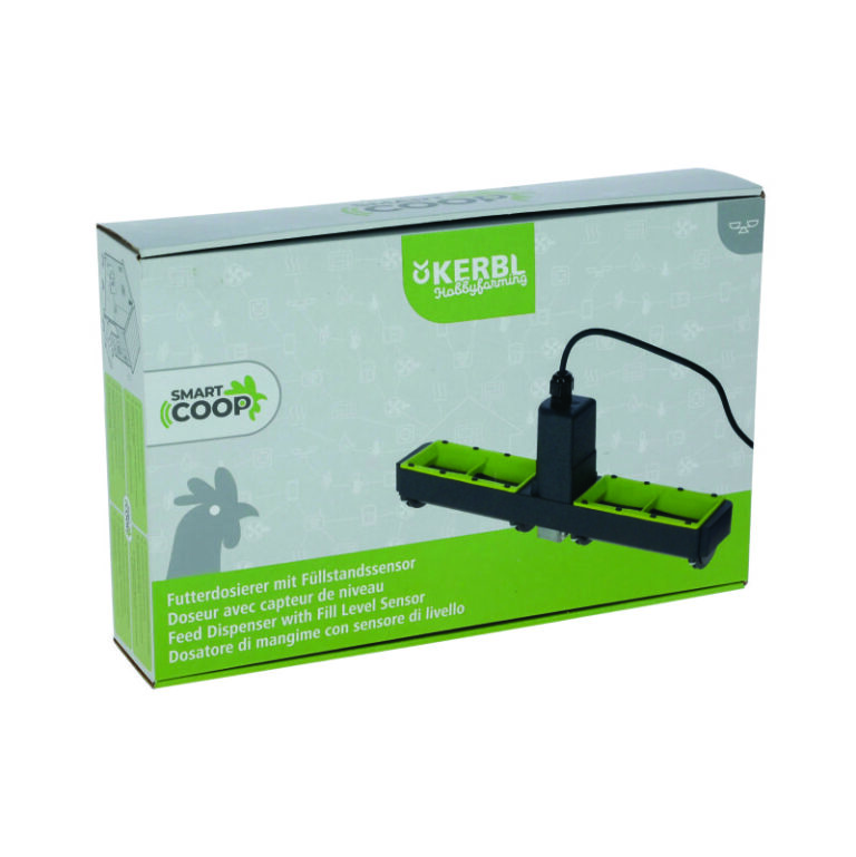 Den integrerte nivå sensoren gjør det mulig å overvåke fôr beholdningen direkte via SmartCoop-kontrollenheten eller i Kerbl-appen, slik at du alltid vet at dyrene får riktig mengde fôr.