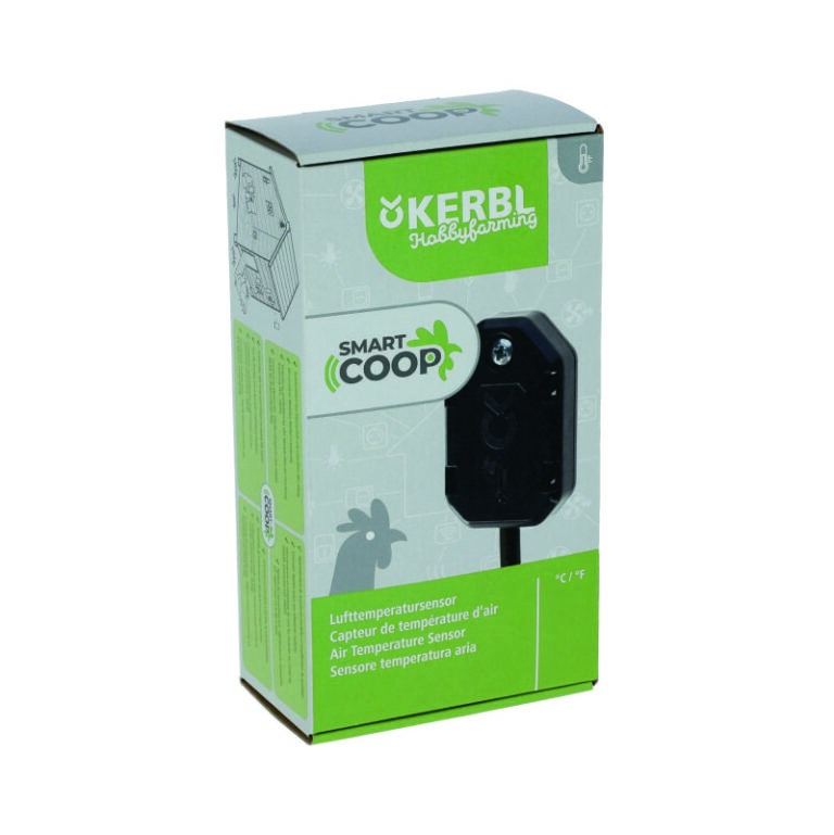 SmartCoop Air Temperature Sensor gir deg full kontroll over temperaturen i hønsehuset. Sensoren overvåker kontinuerlig klimaet i huset og viser temperaturen både på SmartCoop-kontrollenheten og i Kerbl-appen.