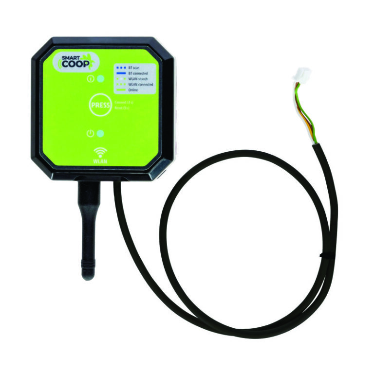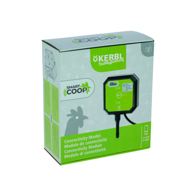 Modulen kobles direkte til SmartCoop-styringsenheten og settes opp via den gratis Kerbl-appen. Oppsettet er enkelt og gir rask tilgang til fjernstyring av hele SmartCoop-systemet.
