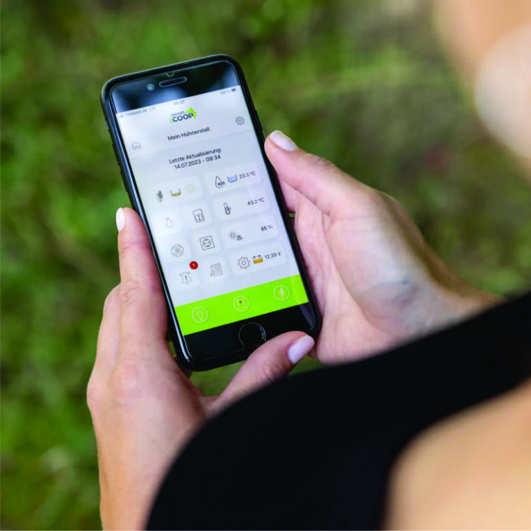 Med Connectivity Module kan du følge med på hønsehuset i sanntid. Endringer i systemet, driftsstatus eller feil varsles direkte i appen, slik at du raskt kan reagere dersom noe oppstår.