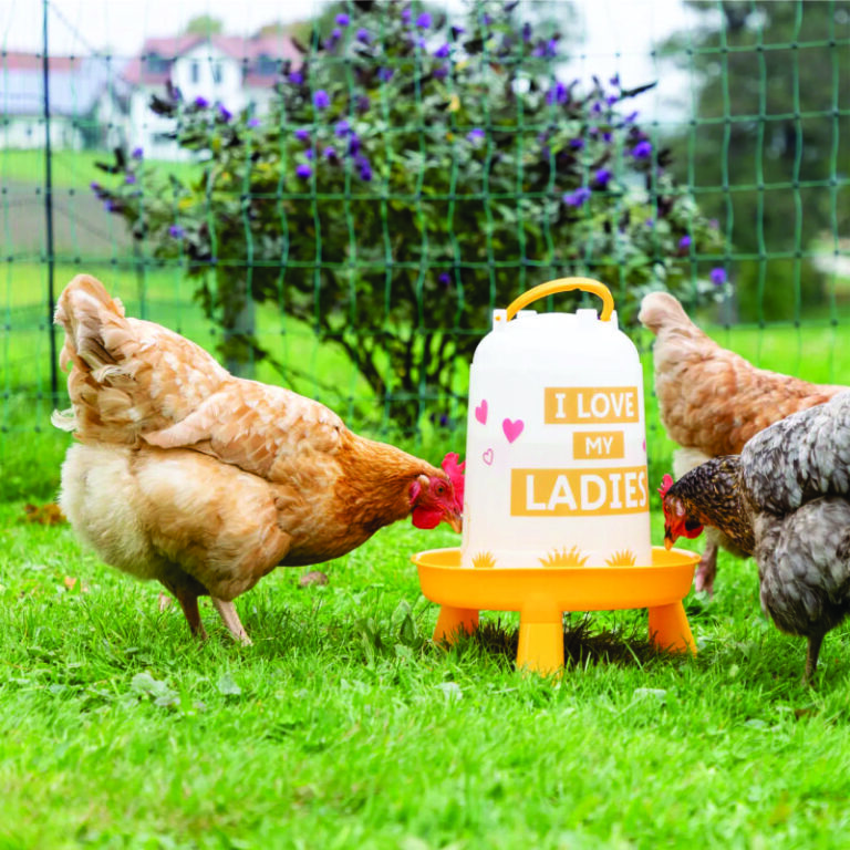 Praktisk og dekorativt plastdrikkekar med motiv – utviklet for høns og annet småfjørfe. Leveres med føtter som løfter drikkekaret fra bakken og reduserer til søling fra strø, jord og avføring. Dette bidrar til renere vann og bedre hygiene i hønsehuset.