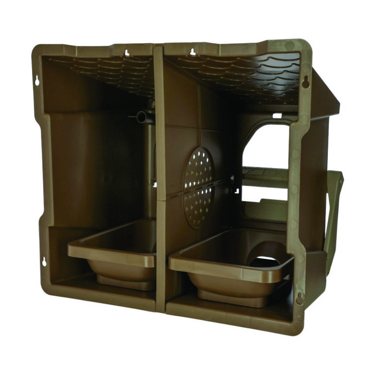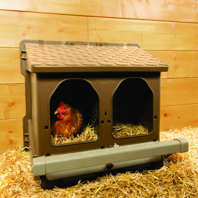 Praktisk og hygienisk verpekasse fra Kerbl Hobby Farming med to romslige redeplasser. Redet er utviklet for enkel rengjøring, trygg egglegging og effektiv egginnsamling. Den skrå bunnen sørger for at eggene ruller forsiktig ned i oppsamlingsbeholderen, hvor de beskyttes mot skader og tilgrising.